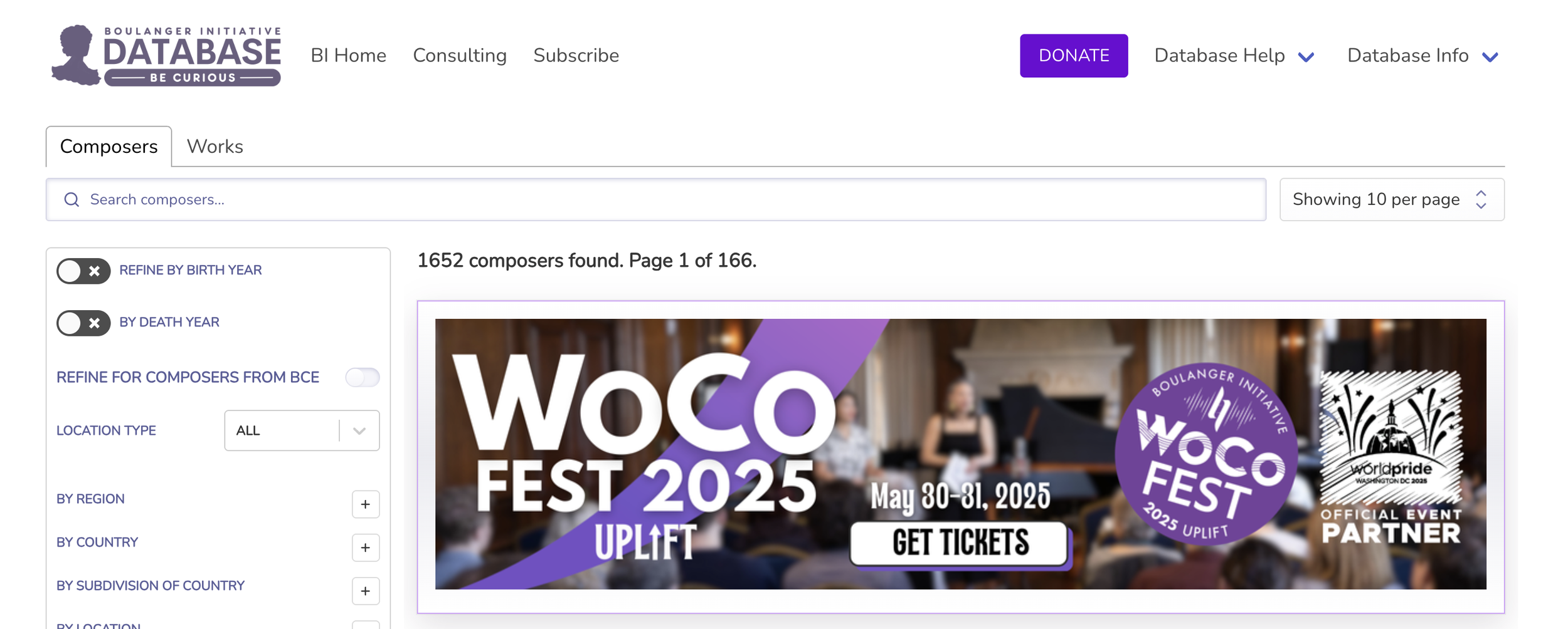 Designed for everyone – musicians, performers, conductors, students, researchers, educators, artistic administrators, and anyone with a curious mind – this database provides access to thousands of works by women and gender-marginalized composers. By sharing knowledge and resources, BID increases access to works by underrepresented composers, empowering all who wish to diversify classical music programming. Learn more about the Boulanger Initiative Database here.