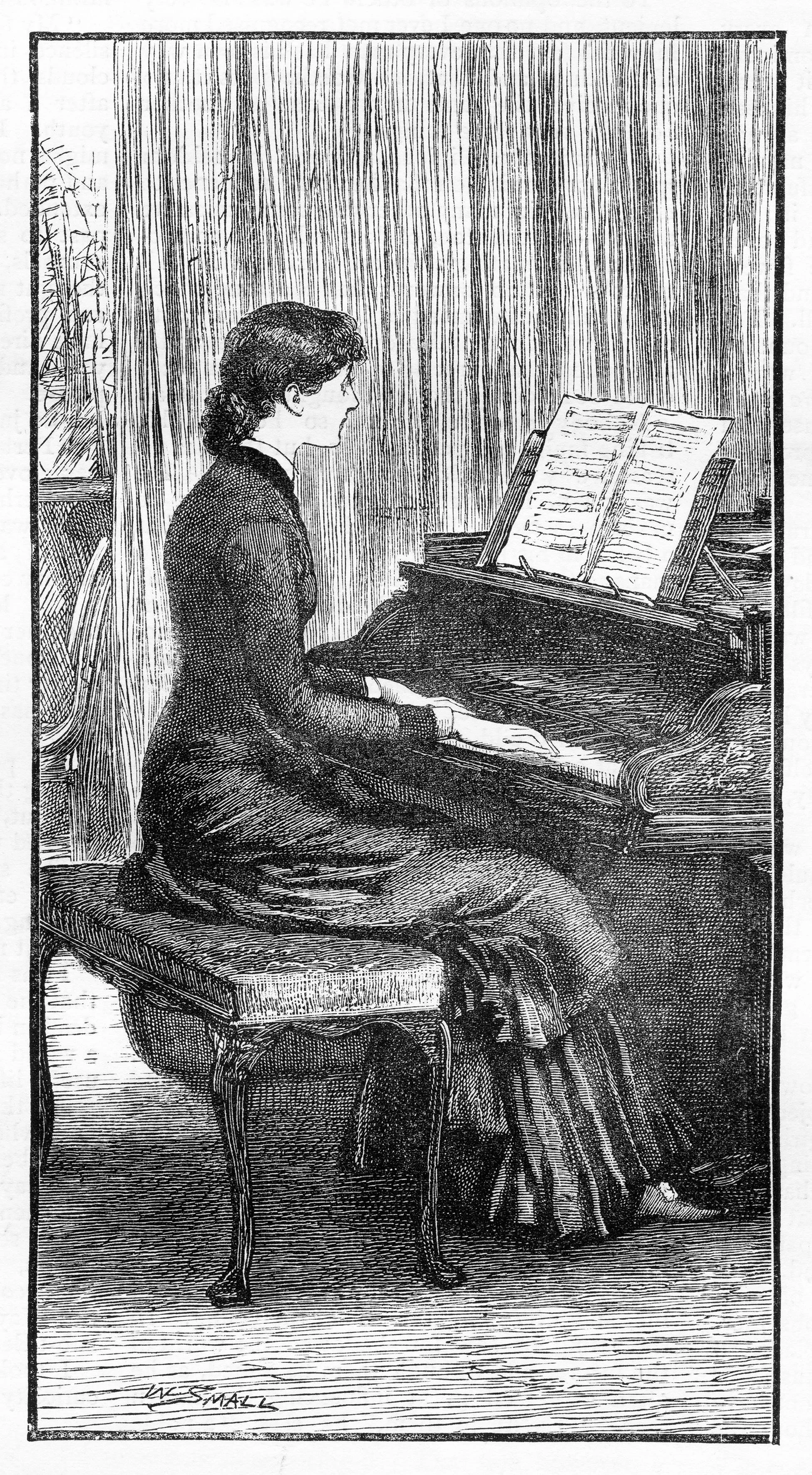 Young Victorian woman playing a piano, based off an engraving from the British magazine, The Girl's Own Paper (1883) | Alamy